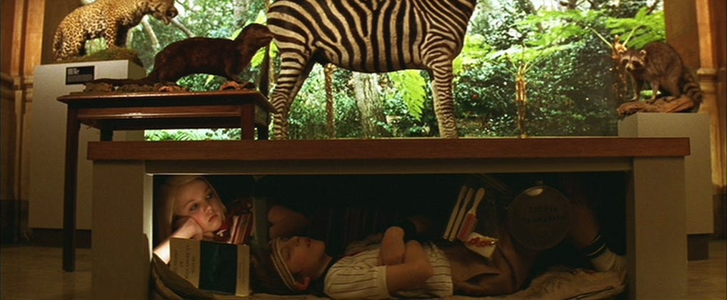 I believe my proper comedy education began with Wes Anderson’s7 dramedies. The Royal Tenenbaums to be exact - which I watched at the carpark-level-cinema of the old Plaza Las Americas Mall. I loved that I was part of the inside jokes, because I could identify at least some pop culture references. Like the museum scene, which was clearly (for me) related to a children’s book I read in school: From the Mixed-Up Files of Mrs. Basil E. Frankweiler8.